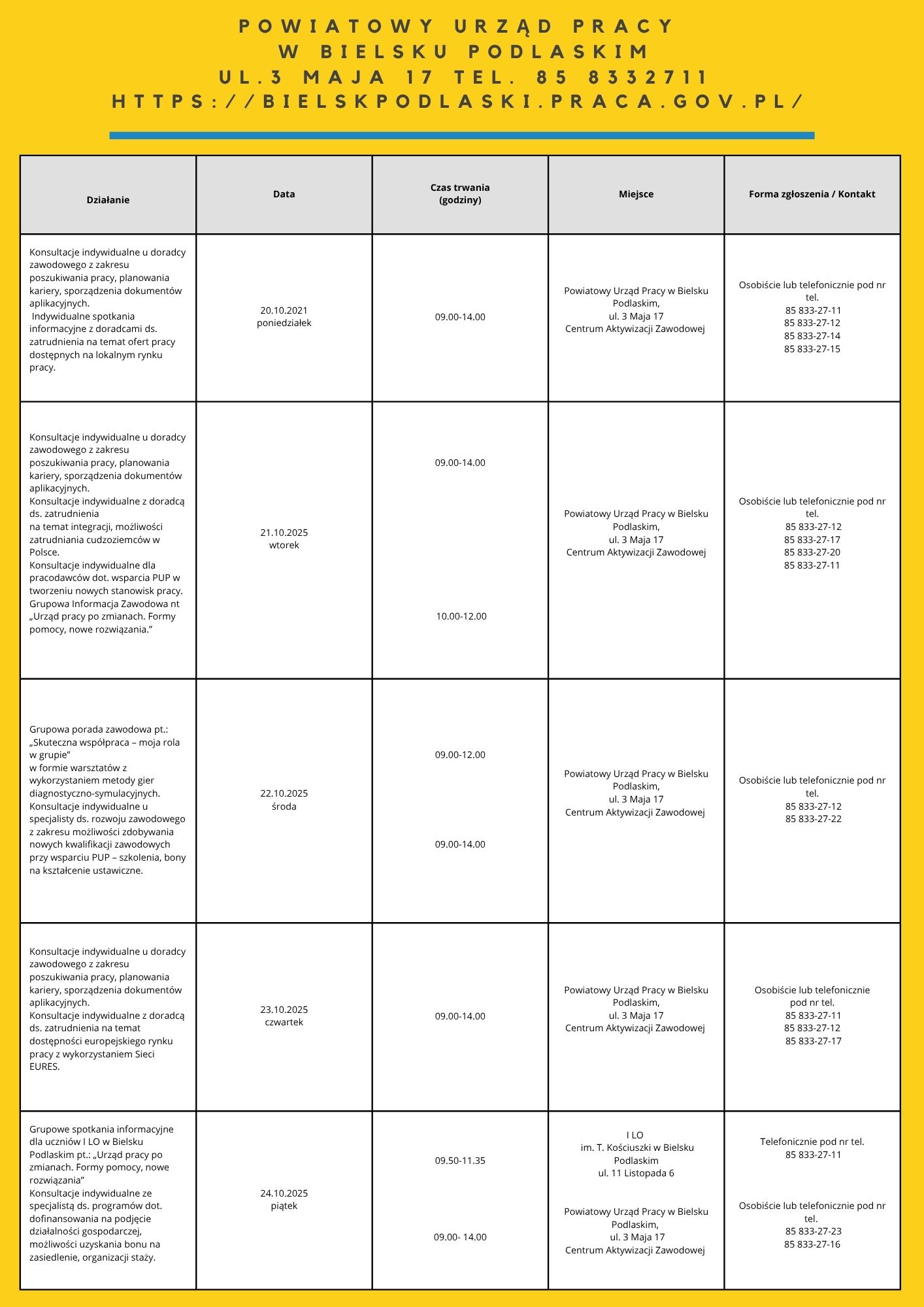 Wojewódzki Urząd Pracy w Białymstoku oraz Powiatowe Urzędy Pracy województwa podlaskiego co roku przyłączają się do tej inicjatywy, celem promowania działań doradców zawodowych na rzecz planowania i budowania ścieżek karier, uczenia się przez całe życie oraz inspirowania lokalnych działań na rzecz rozwoju poradnictwa zawodowego.